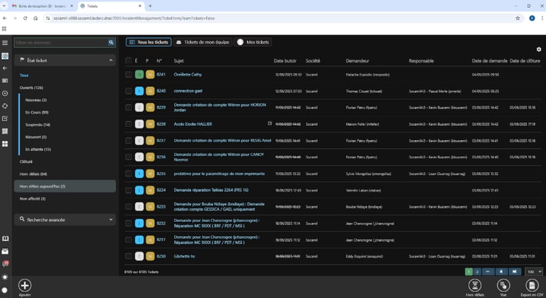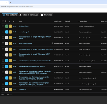 suivi via SAMI (Socamil Assistance Modern Interface) pour les appareils comme les ordinateurs, terminaux, tablettes, imprimantes, talkies.