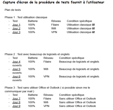 - Créer et envoyer une procédure de test simplifiée à un utilisateur "beta-testeur" en conditions réelles